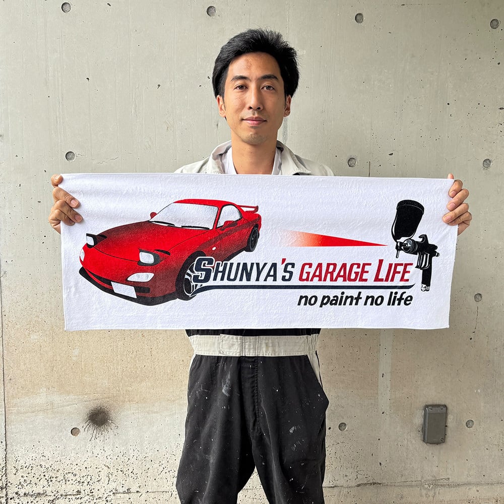 スプレーガンと共に「FD3S」が描かれたオリジナルタオルです。